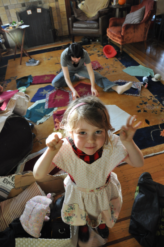 We then feed a rope down each casing Melanie had sewed to the top of the flags.