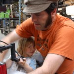 Kyrsten has drummed up a new project for us this summer called Electrobite Olenoides based on a Trilobite. Zolie Kyrsten and I started work on it yesterday. Zoile is really handy and started tighten the bolts with a wrench with very little instruction. Going to have to send her to finishing school soon so she can learn to sand and paint too. This is going to fun to ride next to the snail car!