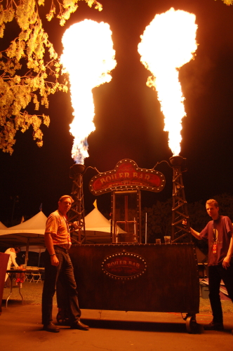 The bar is riveted top to bottom and topped with a fire show that for a tip will get you a 8 foot fire ball from the bar tender.