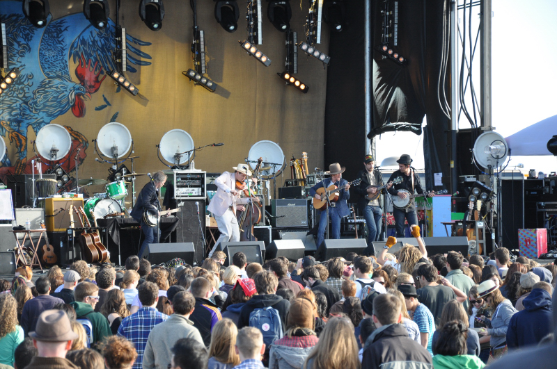 The Railroad Revival Tour with Edward Sharpe & the Magnetic Zeros, Mumford & Sons, and Old Crow Medicine Show, started its first journey last Thursday with a concert in our corner of West Oakland. The Golden Mean and the crew got a chance to perform and see the show and what a hoot it was!