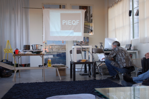 The Parkfield Interventional EQ Fieldwork (PIEQF) is a geologically interactive, kinetic earthwork that will take place in the township of Parkfield, Central California between the 28th June and 28th September 2008. This machine controlled installation converges a USGS reported Californian earthquake list with the near real time control of a hydraulically actuated earthquake shake table. Each time an earthquake occurs, an array of 1/2 inch and 5/8 inch steel rods attached to the shake table will oscillate and resonate, reflecting the dynamic nature of the Californian landscapeBorn in New Zealand and raised on earthquakes, D.V.Rogers has spent a a good part of the past ten years re-engineering an earthquake shake table. Collaborating with seismologist Andy Michael of the US Geological Survey in Menlo Park, this summer the shake table will be installed on the San Andreas Fault in the remote central Californian township of Parkfield.